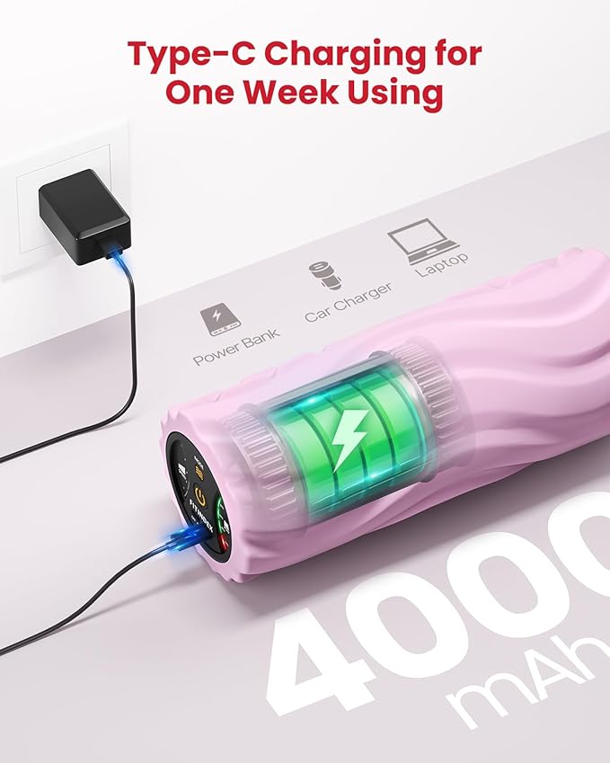 - [Convenient USB-C Charging] With a built-in USB-C charging port, this back roller ensures lasting performance and easy charging. It fully charges in just 5 hours, providing over 2 hours of use per charge on the highest speed setting, so you can stay focused on your workout without interruption