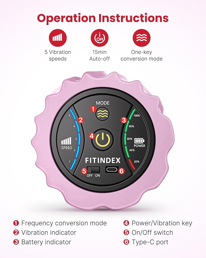 - [5 Vibration Intensity] Experience tailored muscle relief with our vibrating foam roller's 5 powerful vibration intensity settings, featuring frequency conversion technology. Whether you're targeting specific muscle groups or engaging in physical therapy, adjust the speeds from 1500RPM to 3200RPM to meet your needs