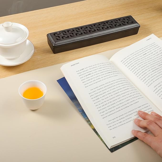 - 【Incense Burner Box】The ceramic incense holder catches all the incense ash without making a mess and is easy to clean. The incense burner comes with a lid so that no ash flies, even with a window or fan open.The ceramic material ensures that the incense burner will not burn out, and also prevents accidental touches from causing burns or extinguishing the incense stick.