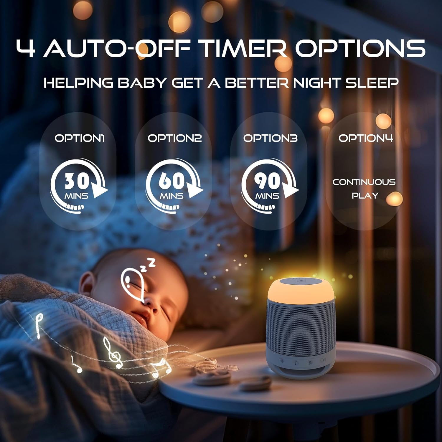 - 💡【Night Light for Midnight Feeding and Diaper Changing】- The baby noise machine offers soft amber night light and LED ambient lighting options to help moms at night without using harsh bedroom lights that can wake up babies and parents. Customizable light color and brightness, combined with our soothing sounds, create the perfect sleeping environment. As your baby transitions to the nursery, the night light provides security and helps develop healthy sleeping habits.