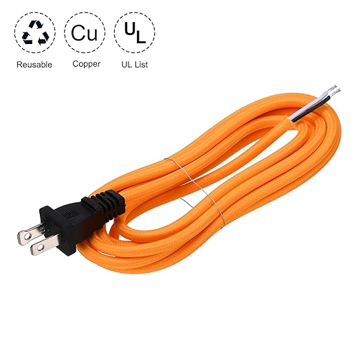 - Specification: Color: Orange; Material: Braided, Copper; Total Length: 8Ft; Wire Diameter: 18AWG; Number of wire cores: 2; Packing List: 1 Pcs x cloth covered lamp cord