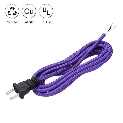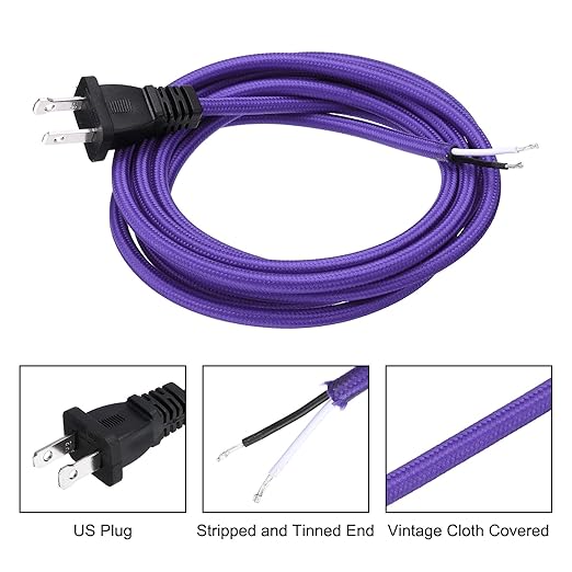- Specification: Color: Purple; Material: Braided, Copper; Total Length: 8Ft; Wire Diameter: 18AWG; Number of wire cores: 2; Packing List: 1 Pcs x cloth covered lamp cord