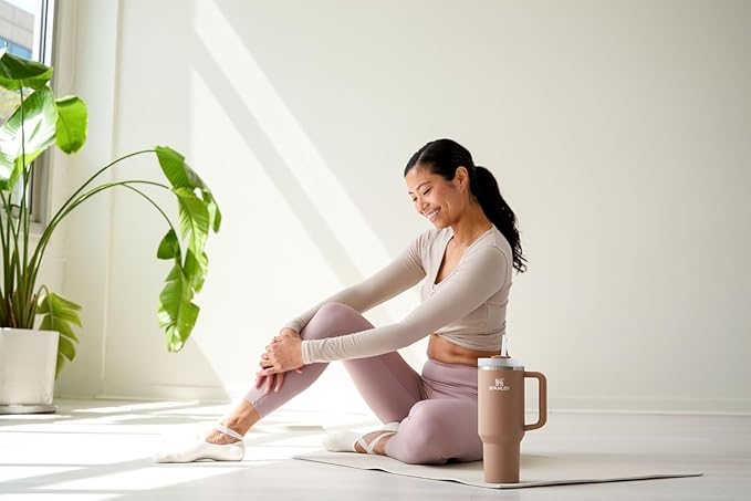 STANLEY Quencher H2.0 Tumbler with Handle and Straw 40 oz | Flowstate 3-Position Lid | Cup Holder Compatible for Travel | Insulated Stainless Steel Cup | BPA-Free | Almond Rose