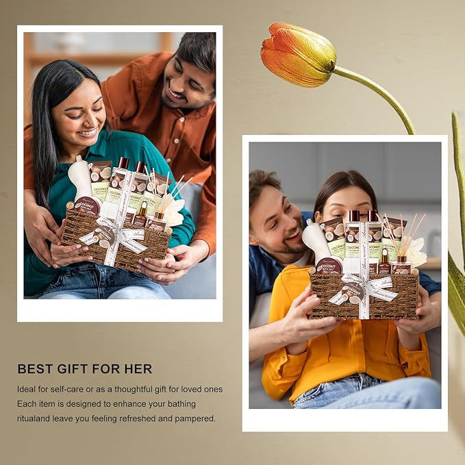 Spa Gift Baskets for Women, Coconut Bath Gift Set for Women Include Bubble Bath, Shower Steamers, Bath Salt. Bath and Body Spa Kit, Mom Birthday Gifts from Daughter, Birthday Gift Basket for Mom