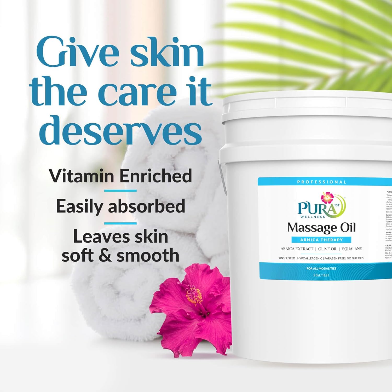 Wellness Professional 5 Gallon Arnica Massage Oil, for Bruising, Unscented Deep Tissue Massage Oil for Therapy, Hypoallergenic, for Physical Therapy, Natural, Skin Moisturizing