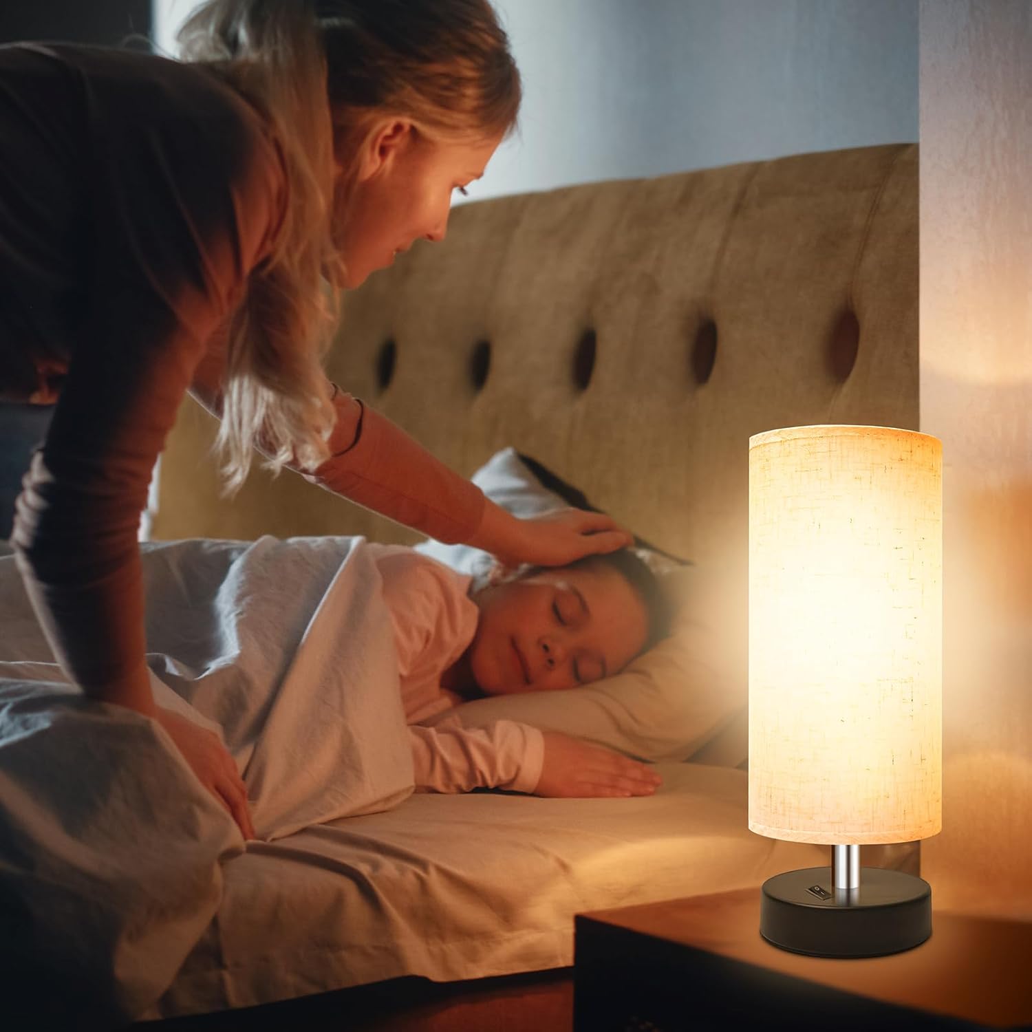 - 【Comfortable Glow】The small bedside lamps uses a flaxen fabric lampshade, which can soften the light to protect your eyesight, especially for teenager, and can also protect teenager's delicate skin. The lampshade is not only beautiful and sturdy, but also allows your family to DIY stickers on the lampshade to improve their hands-on ability.