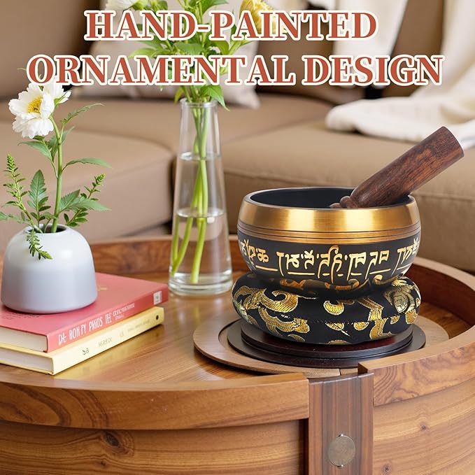 - Hand-Tuned Pure Sound: With its long-sustained, perfectly balanced, and deeply comforting tones, this singing bowl invites you to discover inner peace and harmony. Each singing bowl is meticulously tuned to produce a rich, resonant sound that enhances your meditation and sound therapy sessions.