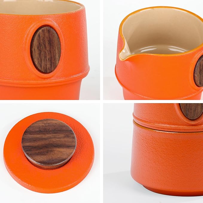 fanquare Travel Ceramic Tea Pot Set with Anti-scald Inlay, Chinese Gongfu Teapot with Infuser, 3 Porcelain Tea Cups and Portable Bag for Outdoor Use, Convenient Tea Service, Orange