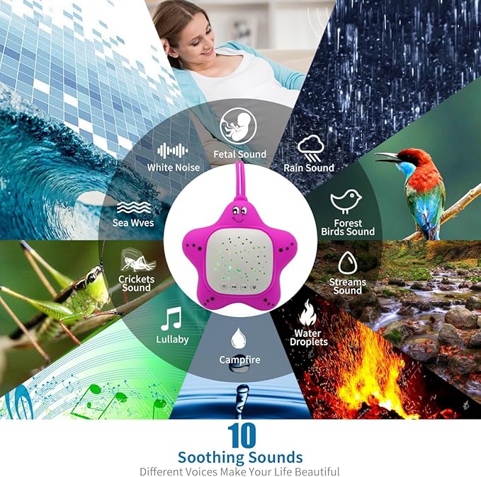 - [Portable Sound Machine] Bring this speaker and let your baby sleep on vacation, go to grandma's house, put it in the stroller when going for a walk, or use it in the car to calm the baby during long-distance riding or traveling. The portable baby noise white sound machine will become your child's best friend, helping them to stay calm and relax and help them sleep!