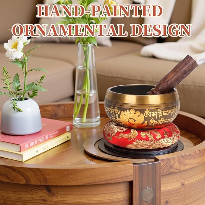 - Hand-Tuned Pure Sound: With its long-sustained, perfectly balanced, and deeply comforting tones, this singing bowl invites you to discover inner peace and harmony. Each singing bowl is meticulously tuned to produce a rich, resonant sound that enhances your meditation and sound therapy sessions.