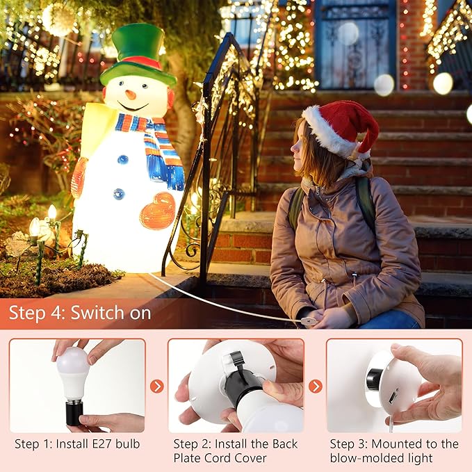 - Easy to Installation: Blow mold replacement light cord only takes 3 steps to complete assembly; Screw the light bulb into the base, insert the base into the 3.5 inch medium blow mold base, plug it into the socket, turn on the power, and it's ready to use