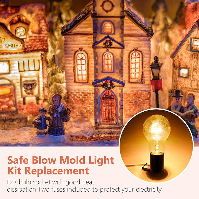 - E27/E26 Light Bulb Socket: Our blow mold accessory cord without bulbs are suitable for 250V and 660W bulbs; E27/ E26 bulb sockets dissipate heat well and the plugs have 2 built in fuses to ensure your safety during use; You can choose to install your own LED bulbs or incandescent bulbs to set the ambience for your holiday blow molding decorations