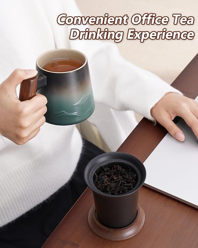 - HIGH QUALITY STURDY CERAMIC: Made of pro-grade heavy ceramic clay, fired at high temperatures to ensuring long-lasting durability. It is lead free which means you can enjoy your tea on a daily basis without worrying about harmful substances leaching into it. the stylish tea cup can also be used for coffee or other beverages. (The tea strainer is dishwasher safe, but recommend to hand wash the mug to protect the wood color.)