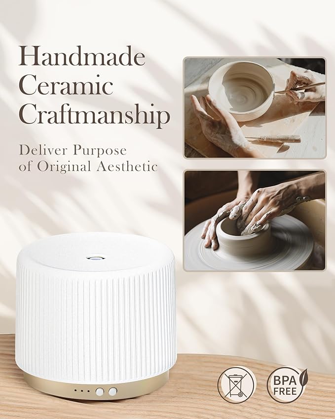 - 【Multi-Functional】 This all-in-one ceramic diffuser acts as an aroma diffuser, humidifier, and nightlight. It helps moisturize the air, lift your mood, relieve stress, and improve sleep quality