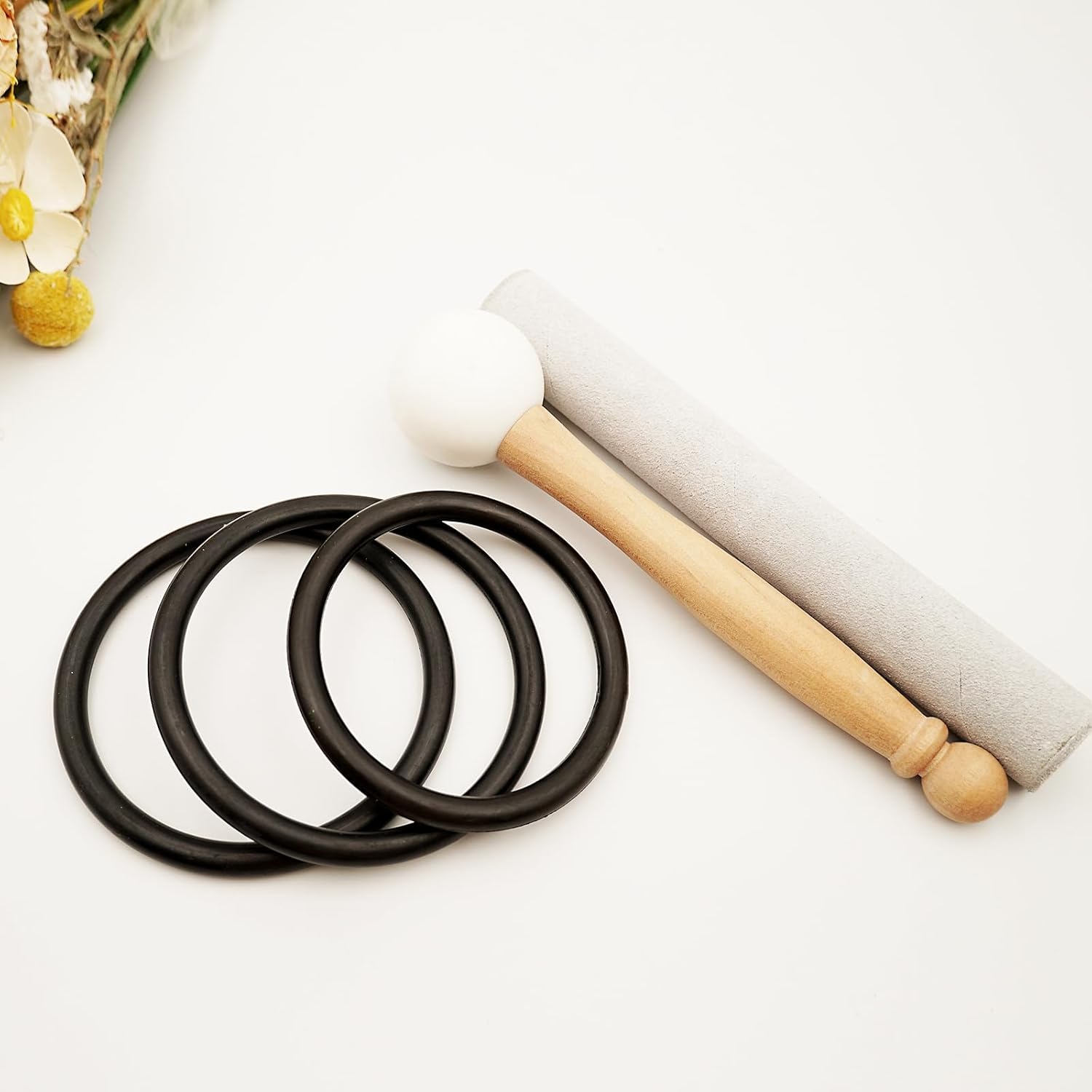 - Singing Bowl Set includes: 3 pcs singing bowls from 7inch to 11inch, Including 7"A 9"F 11"D . The crystal singing bowl set comes with a purple heavy duty carrying case and one suede strikers and one rubber mallet ,3 pcs O-rings