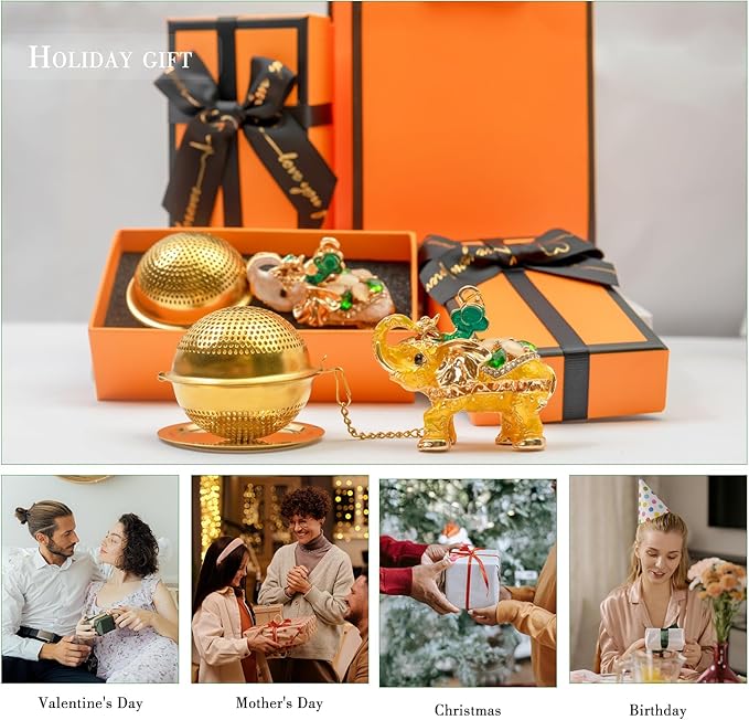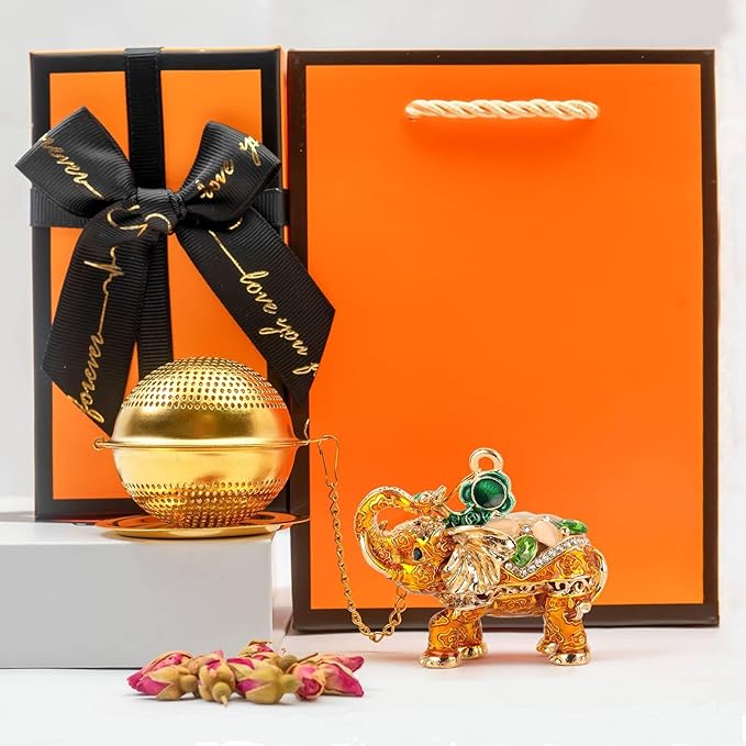 - 【Ideal Gifts And Artworks】This elephant tea diffuser not only functions as a loose leaf infuser, but also serves as a beautiful artwork ornaments. This elephant tea strainer comes in an orange gift box and includes an orange gift bag, ready to give out of the box! It's the perfect christmas gift for those who love tea, adding a fun touch to their tea brewing experience.