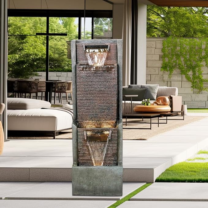 - Lighted Outdoor Fountain: Resin construction large outdoor water fountain is lightweight and portable for moving to inside or outside. Easy to place it everywhere you want to create an artistic and relaxing natural scene.