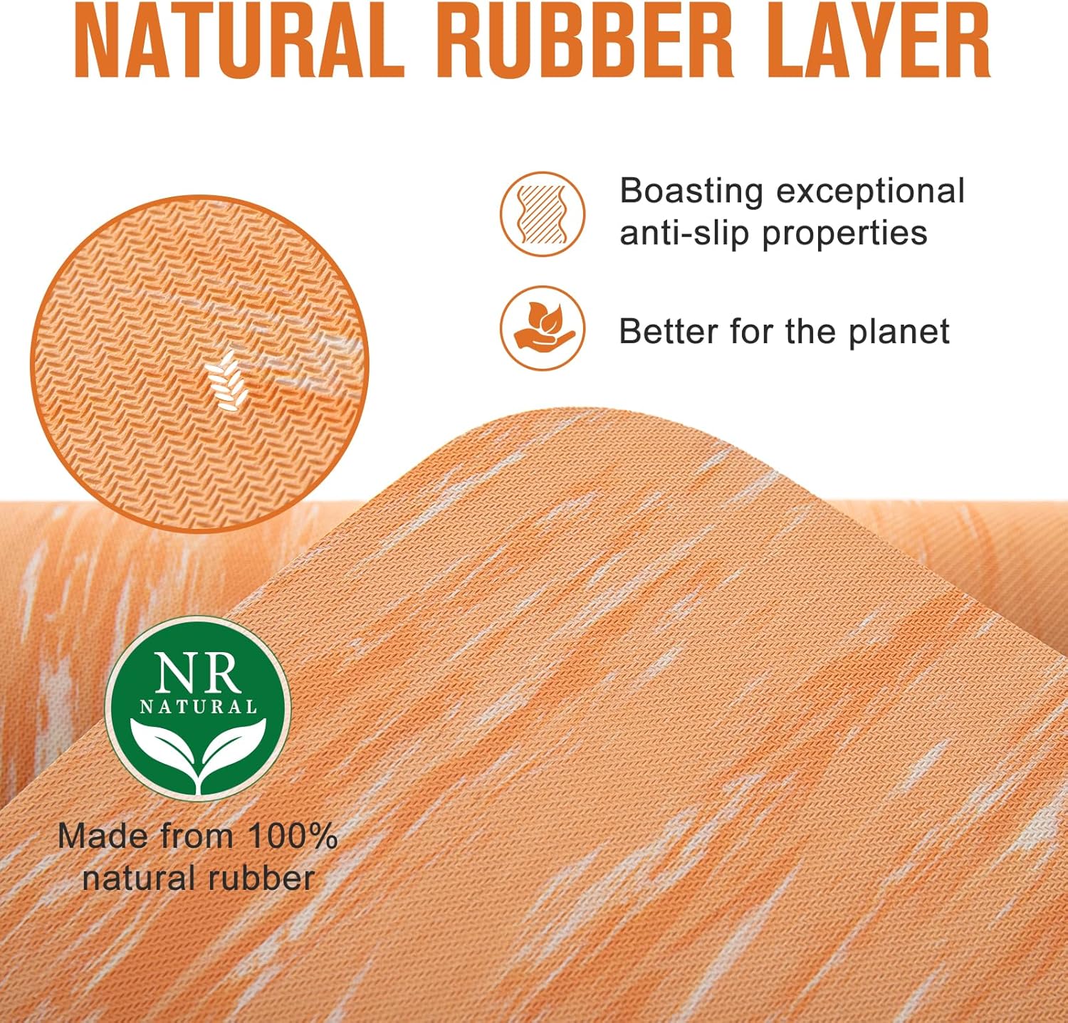 - DOUBLE NON-SLIP & ECO-FRIENDLY - Crafted with 100% natural rubber and recyclable TPE, it's PVC-free and leaves no extra burden on the planet. The rubber layer offers exceptional slip resistance, supporting your practice even during sweaty sessions. Meanwhile, the TPE bottom surface incorporates textured patterns that provide optimal traction and support.