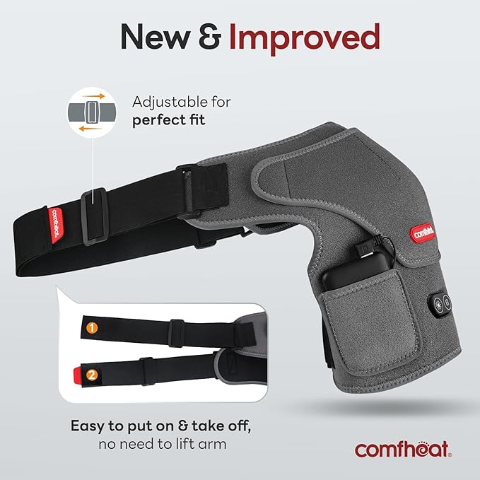 - Heat and Vibration Combined for Maximum Relief: Choose from 3 heat levels (104°F, 122°F, 140°F) and 3 vibration intensities to target relief for rotator cuff injuries, frozen shoulder, or muscle stiffness. Enjoy heat and vibration massage independently or combine them for a tailored therapy session
