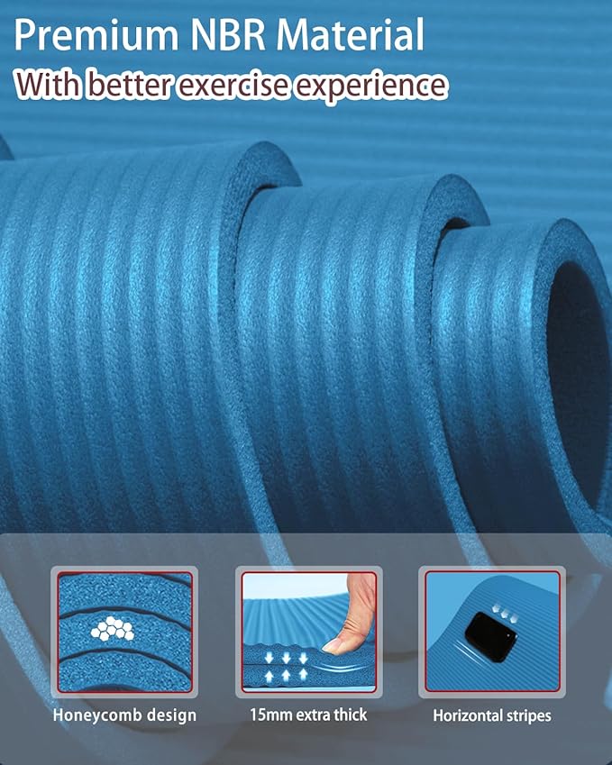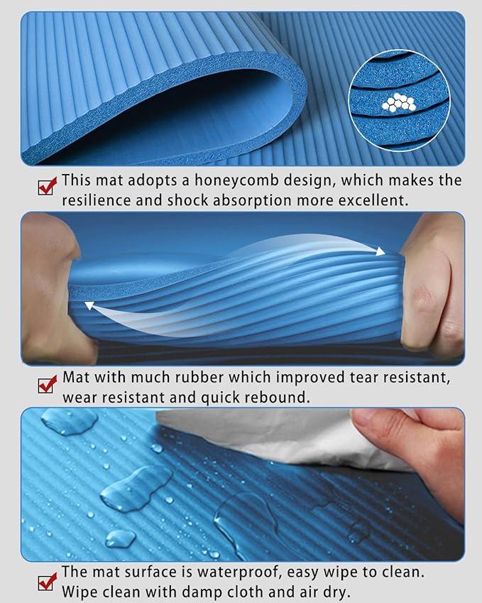 - Comfortable Thickness: With high density foam material, the 0.59'' thick premium mat will comfortably cushions your spine, hips, knees and elbows on hard floors.