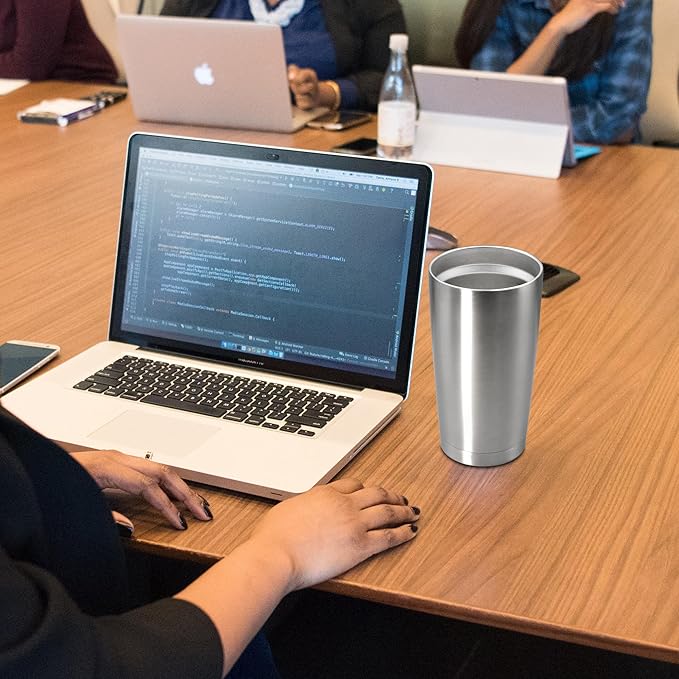 20 oz Tumbler Coffee Travel Tumblers Bulk with Lid Stainless Steel Double Wall Vacuum Insulated Mug Powder Coated Cups fit Car Cupholder for Hot and Cold - Stainless Steel, 12Pack