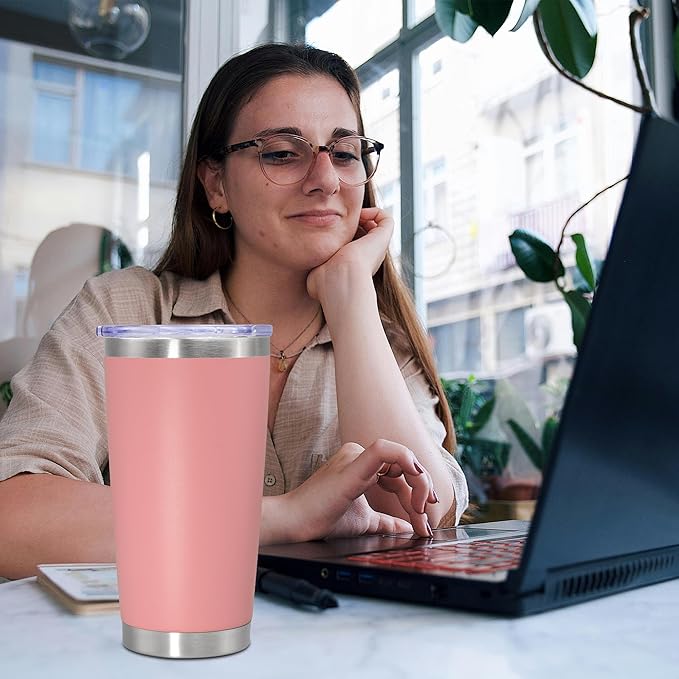 20 oz Tumbler Coffee Travel Tumblers Bulk with Lid Stainless Steel Double Wall Vacuum Insulated Mug Powder Coated Cups fit Car Cupholder for Hot and Cold - Pink, 4Pack