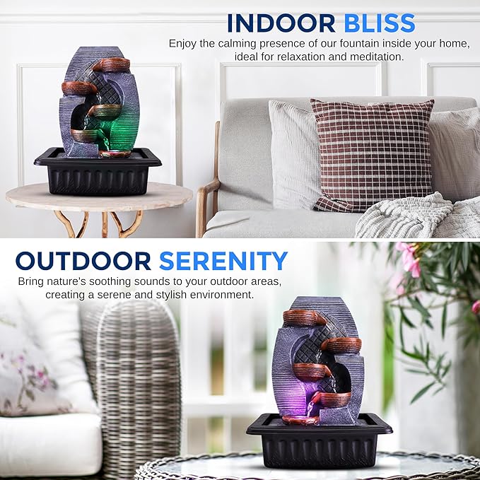 - INDOOR AND OUTDOOR USE: Ideal for homes, patios, and gardens, this versatile waterfall fountain enhances any indoor or outdoor space with soothing water flow.