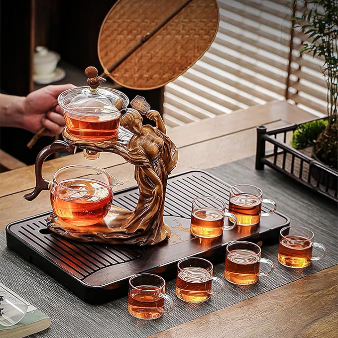 - ☕【AUTOMATIC GLASS TEAPOT SET 】 This Lazy Kungfu Glass Tea Set comprises a tea set base, teapot, pouring teacup, 304 filter screen, and magnetic balls, offering a complete tea brewing experience. Compared to others, we also provide an extra Japanese style tea set towel and a spare magnetic ball(to prevent loss).