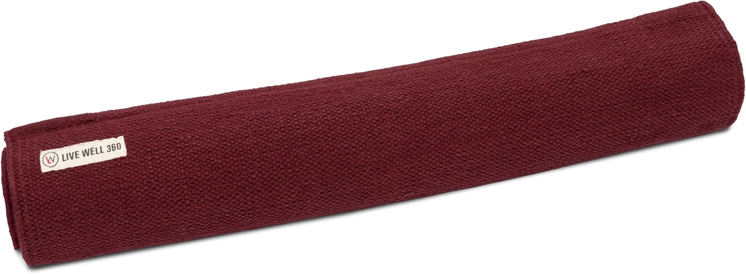 Live Well 360 Handmade Organic Cotton Yoga Mat - Non-Toxic, Chemical-free and All Natural Cloth Yoga Mat - Exercise, Workout, & Fitness Rug - Woven Material - Absorbent & Washable - 78" x 27"