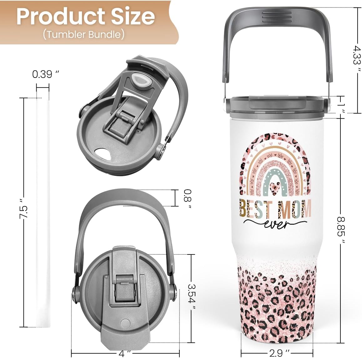 Mom Tumbler 30oz, Best Mom Ever Tumbler Stainless Steel Insulated Coffee Travel Mug with Handle & Flip Straw Lid, Gifts for Mommy, Presents for Mom for Christmas Birthday Mothers Day Valentines