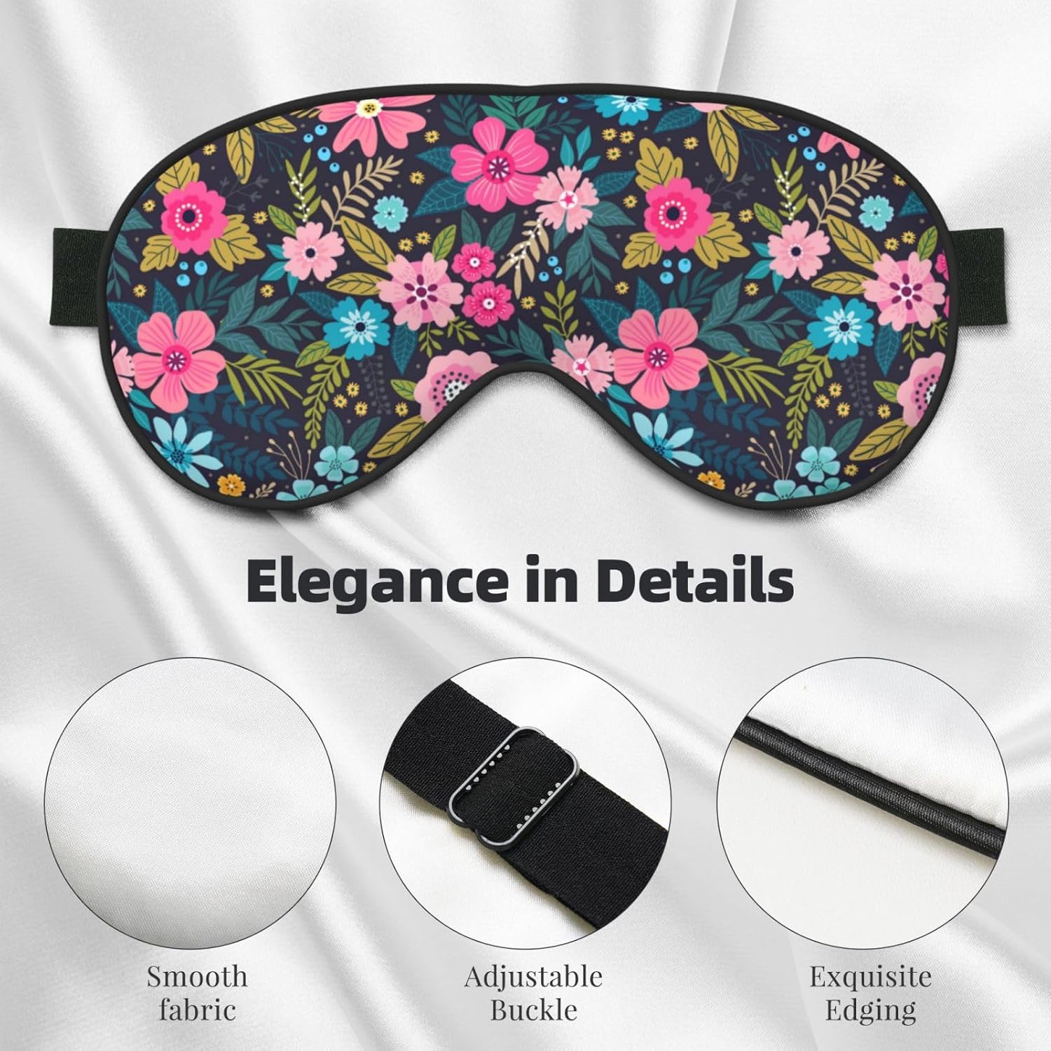 Sleep Eye Mask Colorful Floral and Leaves Sleep Mask for Women Men Comfortable Eye Mask with Adjustable Strap Soft Eye Cover Blindfold for Travel Yoga Nap Shift Work