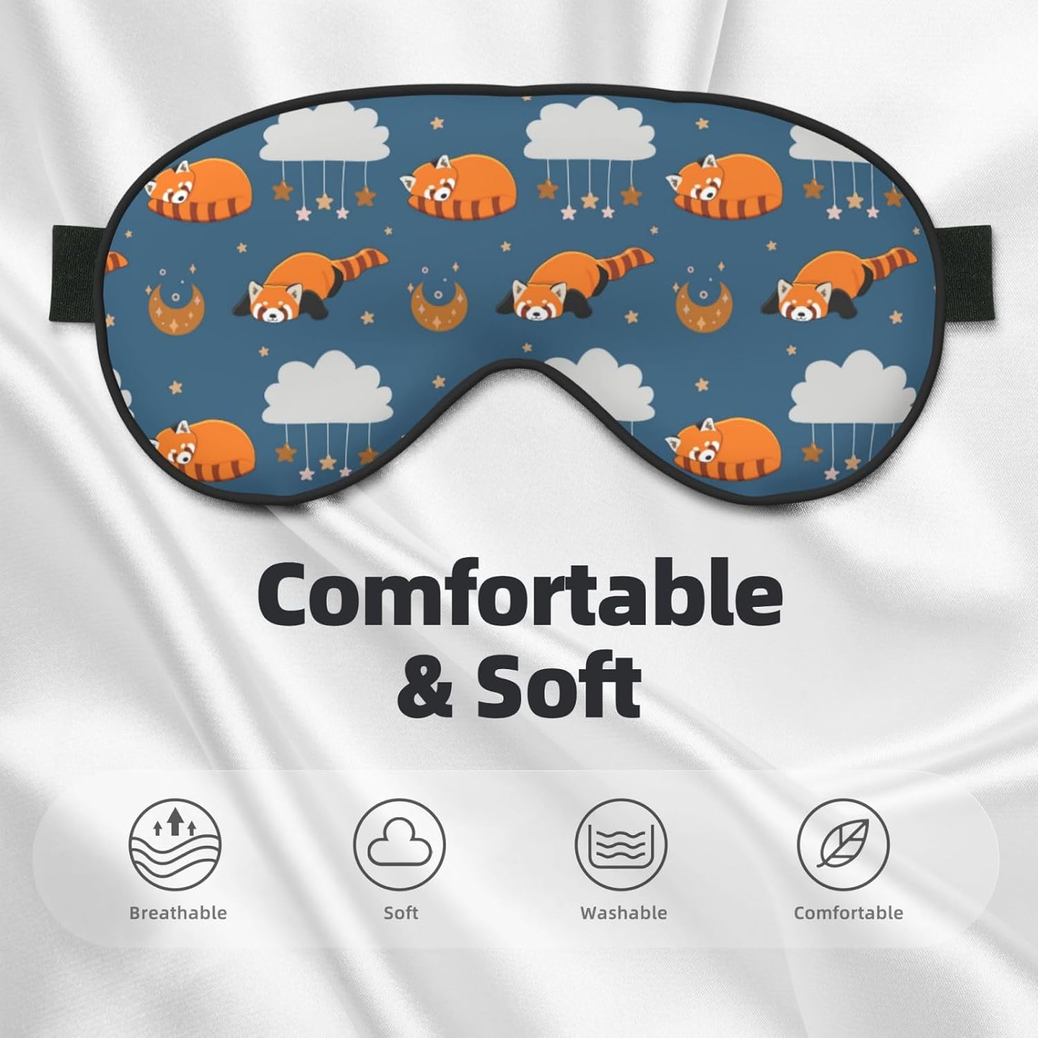 Sleep Eye Mask Red Panda Moon Cloud Star Sleep Mask for Women Men Comfortable Eye Mask with Adjustable Strap Soft Eye Cover Blindfold for Travel Yoga Nap Shift Work