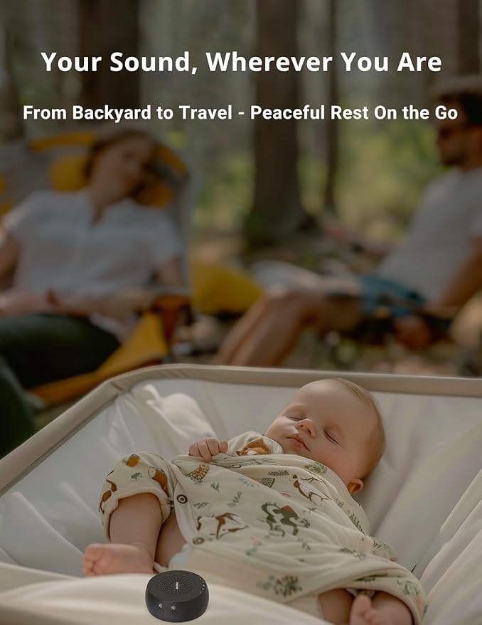 - Portable Sound Machine for Travel: Weighs only 2.88 oz; fits into pockets or bags; built-in fabric loop attaches to strollers, backpacks, or nightstands; compact design for bedrooms, nurseries, or travel sleep support