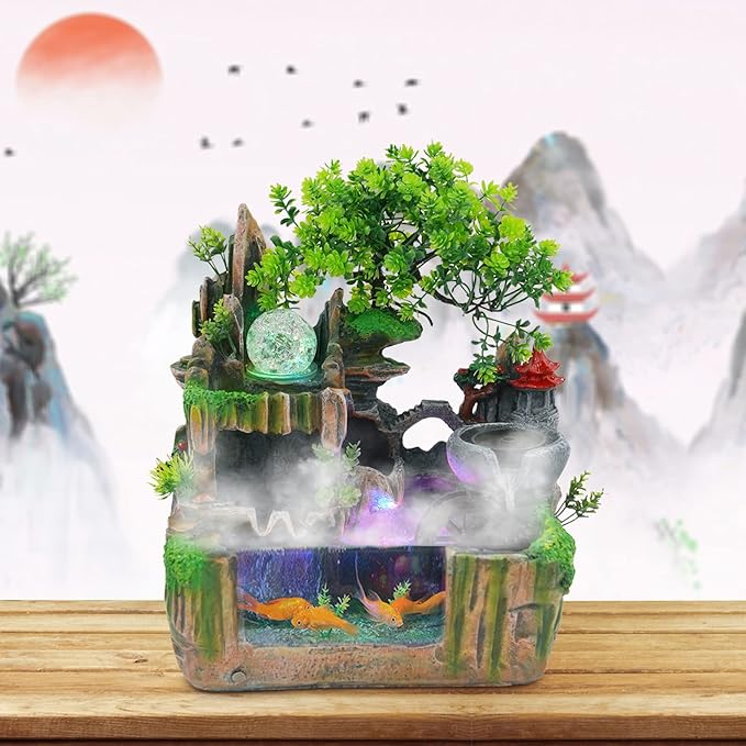 - Multi-purpose: The wonderful rockery and natural imitation greenery are charming and unique and can be used as decoration to add color to your tabletop. In addition, CaLaOCO indoor fountain rockery can also be used as a fish tank to add interest to your space