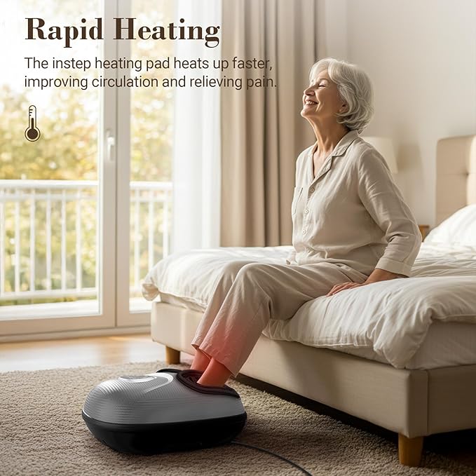 - Relax your feet, relax your body: CuPiLo Heated Foot Massager incorporates flexible pressure nodes that target specific areas of your feet for an effective massage. It combines rolling/kneading, quick heating, compression, and vibration functions to alleviate pressure and address various foot issues. Treat yourself to the ultimate foot pampering experience with this device and say goodbye to conditions like plantar fasciitis, neuropathy, chronic pain, and muscle tension.