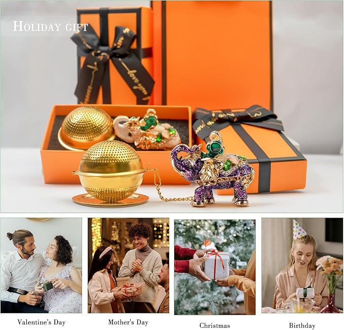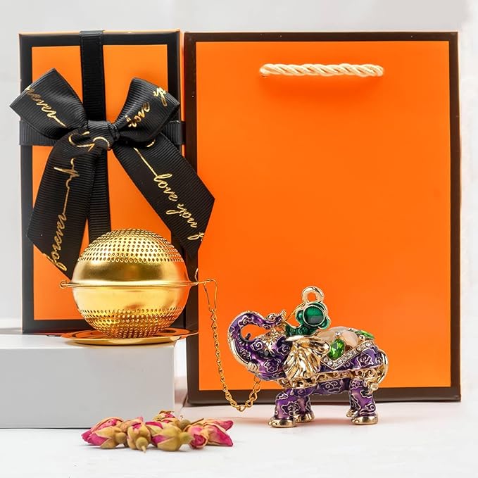 - 【Ideal Gifts And Artworks】This elephant tea diffuser not only functions as a loose leaf infuser, but also serves as a beautiful artwork ornaments. This elephant tea strainer comes in an orange gift box and includes an orange gift bag, ready to give out of the box! It's the perfect christmas gift for those who love tea, adding a fun touch to their tea brewing experience.
