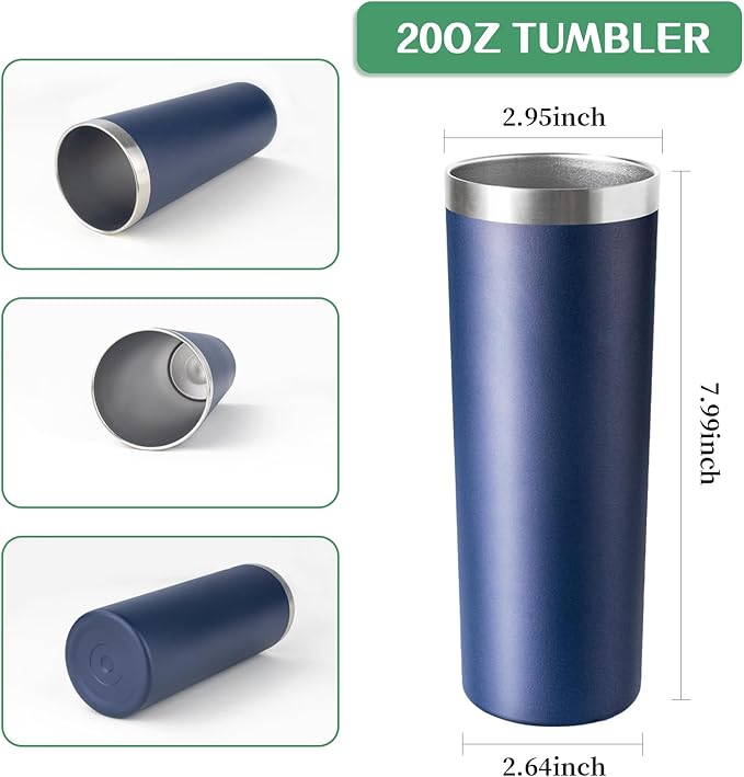 20 oz Skinny Tumbler with Lid and Straw,Stainless Steel Vacuum Insulated Tumbler Cup Double Wall Leak-proof Coffee Mug,Travel Thermal Water Tumbler for Office,Outdoor (Black/White/Navy blue/Grey)