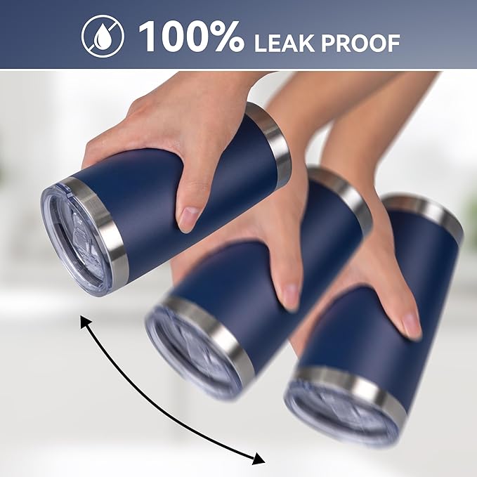 - 18/8 Stainless Steel Tumblers: Our tumbler cups are made of food-grade stainless steel, which makes them rust-resistant and unbreakable for heavy use all year round. The press-on lid is made of BPA-free plastic, which is safe and prevents leaks. These non-toxic tumblers provide a healthy drinking experience.