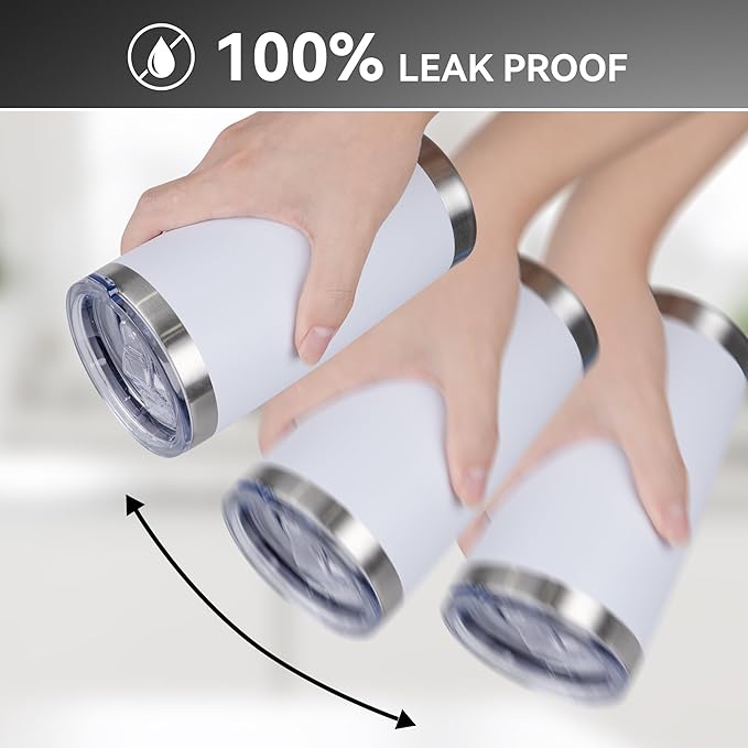 - 18/8 Stainless Steel Tumblers: Our tumbler cups are made of food-grade stainless steel, which makes them rust-resistant and unbreakable for heavy use all year round. The press-on lid is made of BPA-free plastic, which is safe and prevents leaks. These non-toxic tumblers provide a healthy drinking experience.