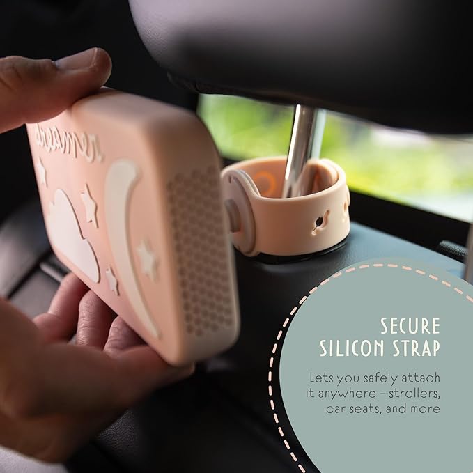 - Ultimate Portability & One-Hand Use: Dreamerās silicone strap and magnetic clasp let parents easily attach it to cribs, strollers, or diaper bags with one hand. The secure clasp stays in place during bumpy rides and stroller jogs.