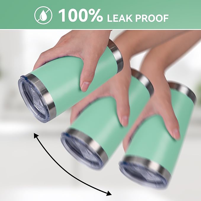 - 18/8 Stainless Steel Tumblers: Our tumbler cups are made of food-grade stainless steel, which makes them rust-resistant and unbreakable for heavy use all year round. The press-on lid is made of BPA-free plastic, which is safe and prevents leaks. These non-toxic tumblers provide a healthy drinking experience.