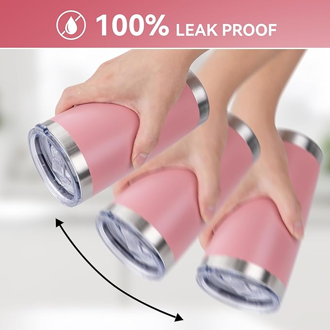 - 18/8 Stainless Steel Tumblers: Our tumbler cups are made of food-grade stainless steel, which makes them rust-resistant and unbreakable for heavy use all year round. The press-on lid is made of BPA-free plastic, which is safe and prevents leaks. These non-toxic tumblers provide a healthy drinking experience.