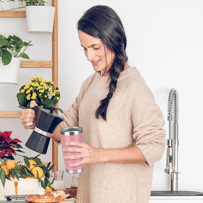 20 oz Tumbler Stainless Steel Tumblers Bulk with Lid Double Wall Insulated Coffee Tumbler Cups for Hot & Cold Drinks Powder Coated Travel Coffee Tumbler Mug Metal (Rose Pink, 12 pack)