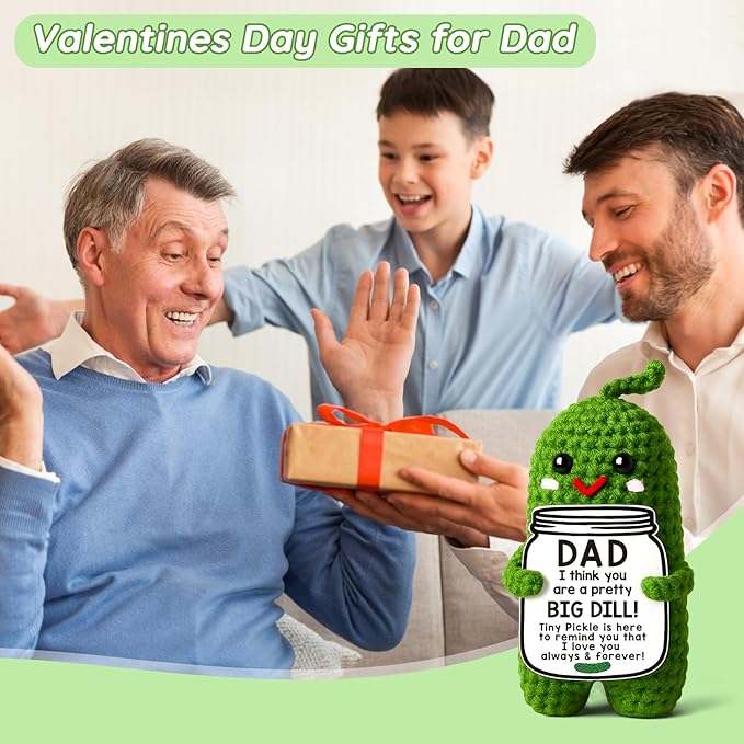 - Valentines Day Gifts for Dad - Each pickle doll is carefully crocheted from high-quality yarn, offering a soft and comfortable feel. This emotional pickle brings comfort and positivity, serving as a funny yet touching reminder of love. It’s a heartfelt addition to any dad’s shelf of unique fathers day gifts or cool dad presents