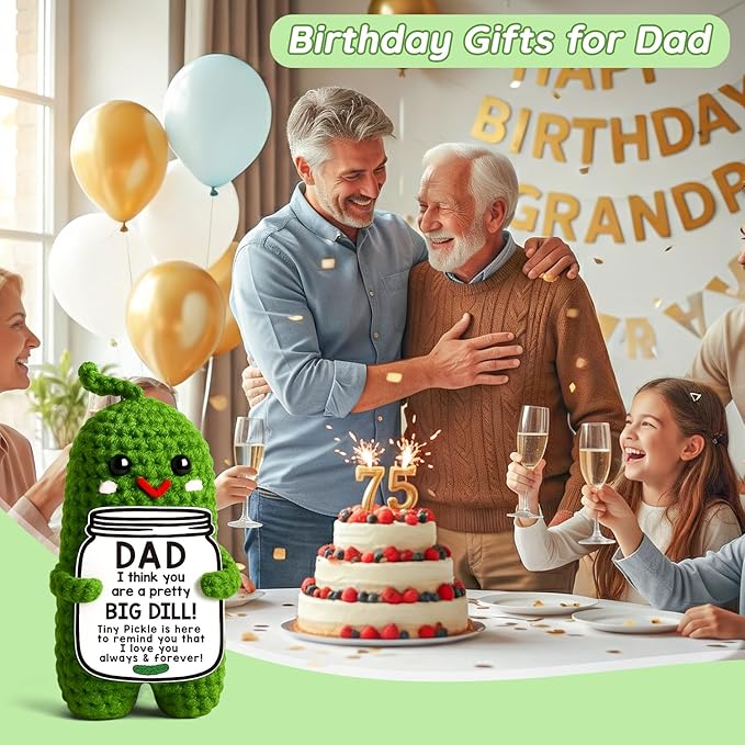 - Birthday Gifts for Dad - This Funny Emotional Care Pickle is perfect for dads who appreciate a good laugh and a unique keepsake. Crafted with care, it comes with a heartwarming message that says, “DAD, I think you are a pretty BIG DILL!”—making it an ideal choice for fathers day gifts from daughter or son, or for birthdays and Christmas
