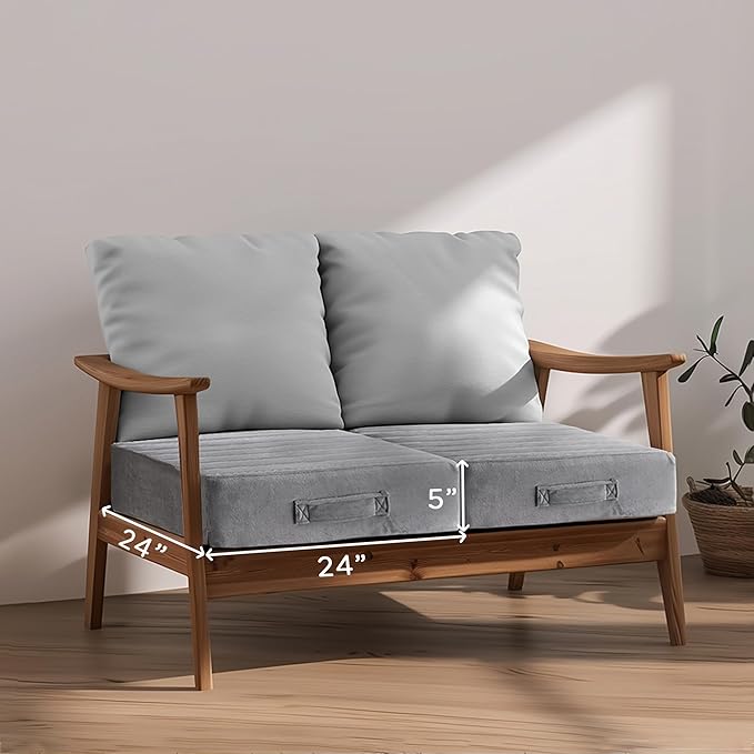 Codi Thick Replacement Couch Cushions 2 Sets, Upholstery Foam with Washable Covers for Sofa Cushion Chair Meditation - 24 × 24 × 5 Inch, High Density Foam, Grey