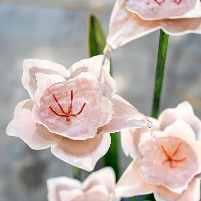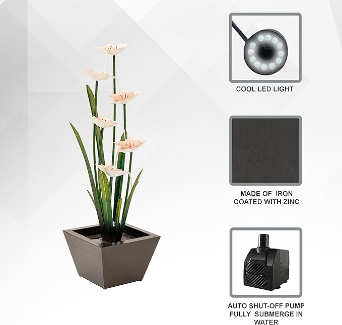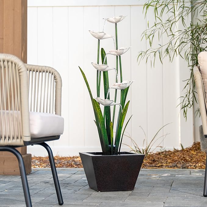 - LONG-LASTING METAL CONSTRUCTION: Crafted from high-quality metal, this sculptural fountain is built to withstand the elements, ensuring long-lasting beauty in any environment. Its freestanding design allows for flexibility in placement, making it an excellent choice for both indoor and outdoor settings. The flower tiered fountain elegantly blends artistry with functionality, enhancing your landscape.