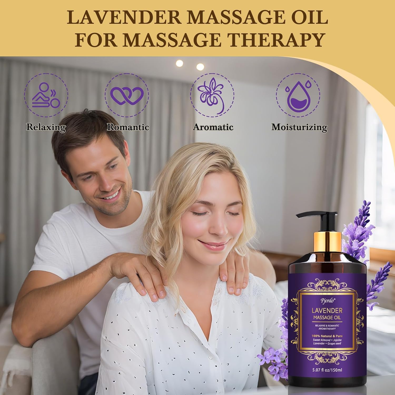 - Aromatherapy Lavender Massage Oil: Our body massage oil is made of natural ingredients. The perfect blend of lavender essential oil and grapeseed oil creates a romantic aroma, which helps soothe the body and mind, improve sleep, nourish the skin, and promote blood circulation, bringing you comprehensive care for both your body, mind and skin.