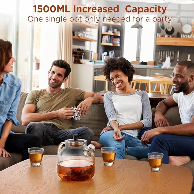 - Removable Infuser: The glass teapot has a 304 stainless steel mesh infuser filter, can loose leaf tea, flowering Tea, Teabags, Coffee and fruit-infused water. The non-dripping spout and the handle will help your tea making and serving comfort.