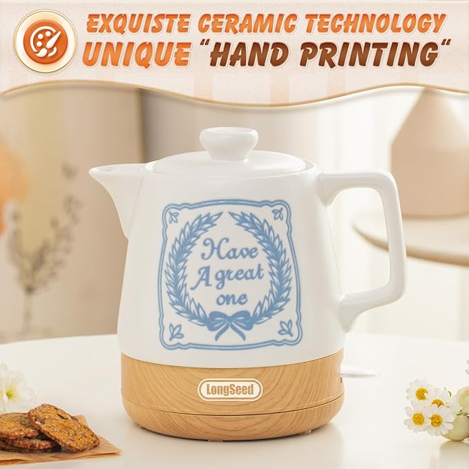 - Fast Boiling: 1000 watt Heating power,this ceramic electric kettle boils up to 1 liter (1 qt) of water faster than a microwave and safer than a stovetop pot. No need to wait for a long time, brew hot tea or coffee anytimeperfect for hectic mornings. Good Kitchen Assistant